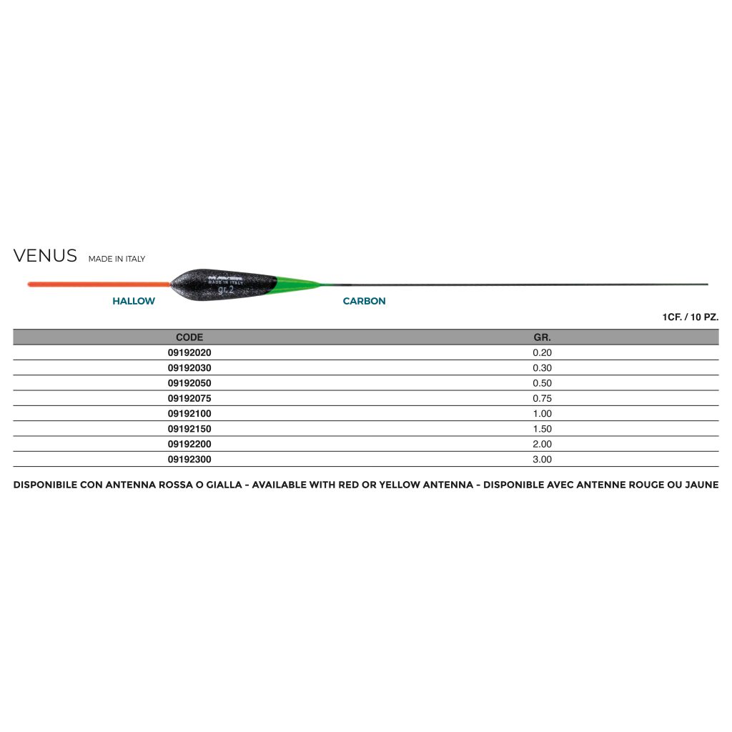 ENG: Its lengthened shape make it perfect for a speedy caughts into the channels; The stainless steel drift give firmness, making every single bite clear; The fiberglass antenna upgrade the sensitivity of this float so much to make any hint clear and definite.