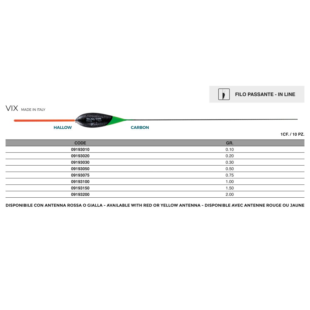 FRA: Flotteur dont la forme est idéale pour pêcher dans les canaux des poissons de petites dimensions en vitesse, très stable grâce à la dérive en acier, permet de visualiser très bien tous types de morsure vers l’haut aussi bien que vers le bas. Antenne en fibre de verre avec une sensibilité extrême.